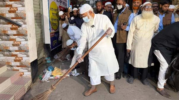 ভোরে রাস্তা পরিষ্কার করলেন জামায়াত আমির